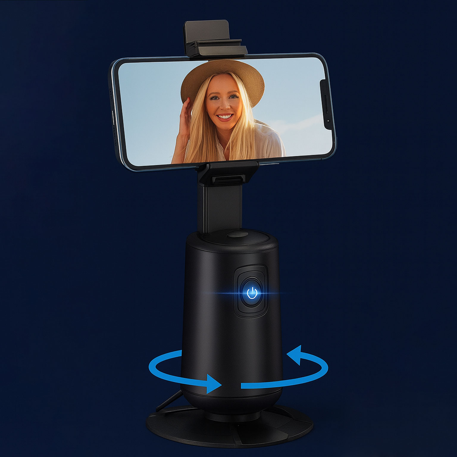 With advanced 360° rotation, auto-tracking AI, and a responsive touch power button, this device keeps you perfectly centered while recording videos, video-calling, or live streaming.